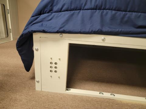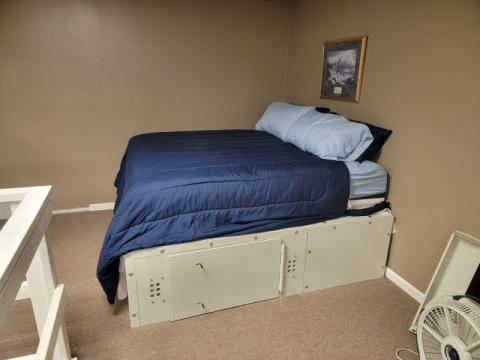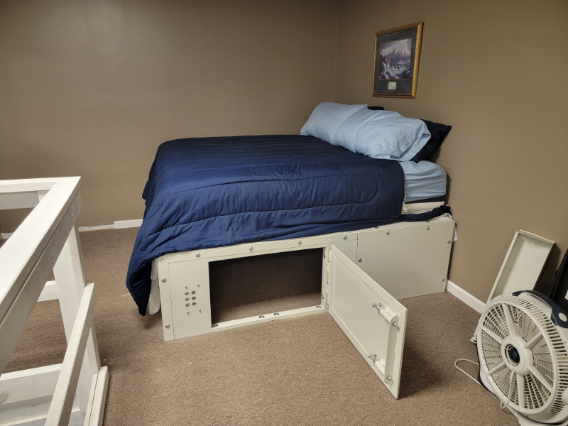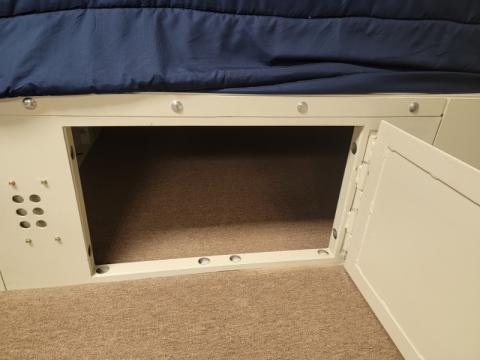 Our BedLOCK unit is our patent-pending, under-bed safety vault. It provides a convenient, space-saving shelter and comes with a locking deadbolt for extra safety and protection. It can also be customized into a variety of shapes and sizes to fit your needs.